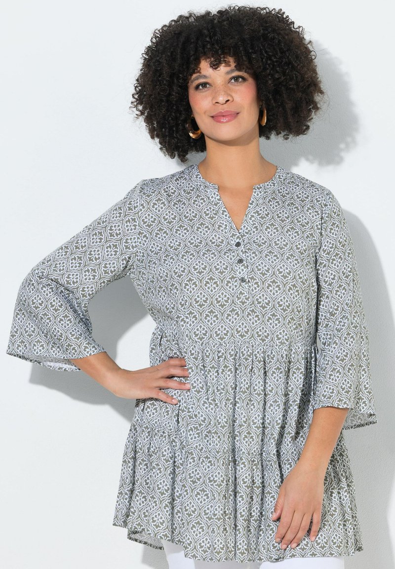 LONGTUNIKA, A-LINIE, ORNAMENT-MUSTER, 3/4-ÄRMEL, VOLANTS - Tunika - reed green