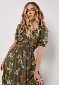 APRICOT FLORAL TIERED SMOCK DRESS - Maxi šaty - khaki