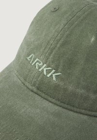 Zelená bavlněná kšiltovka s křivým kšiltem, s vyšitým logem "ARKK". Měkká textura a šesti panelový design s ventilačními otvory.