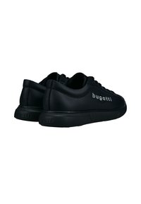 Černá nízká teniska se šněrováním vpředu, texturovanou podrážkou a logem "bugatti" na boku.