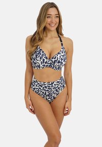 Hope Bay, navržený exkluzivně pro značku Fantasie, nabízí sofistikovaný leopardí vzor v odstínech námořnické modři na jemném slonovinovém podkladu. Bikinové kalhotky poskytují vyšší krytí pro dodatečné zakrytí břicha. Nastavitelné boční šňůrky umožňují nařasení pro lichotivý efekt v oblasti břicha a variabilní zakrytí nohou. Plně podšité. Vyrobeno s materiálem Lycra® Xtra Life™.