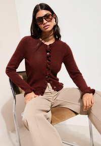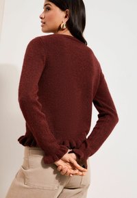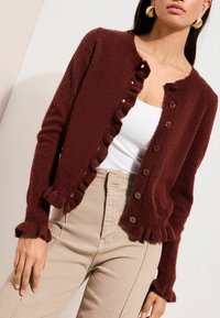 REGULAR FIT - RUFFLE DETAIL - Kardigan - burgundy red