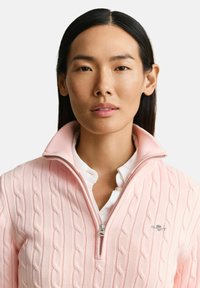 STRETCH CABLE HALF-ZIP - Svetr - apricot pink