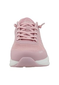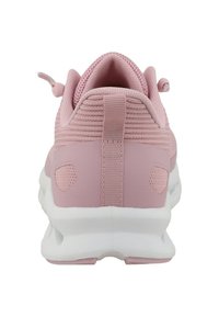 Světle růžová teniska Kappa se síťovaným svrškem, bílou polstrovanou podrážkou s ventilačními otvory a logem na boku, přední části a jazyku, boční pohled.