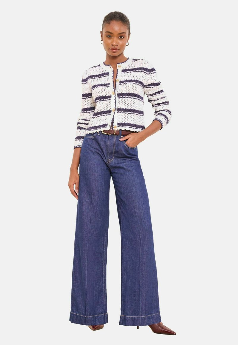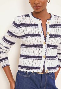 REGULAR FIT - STRIPE BUTTONED LONG SLEEVE CREW NECK - Kardigan - white blue navy