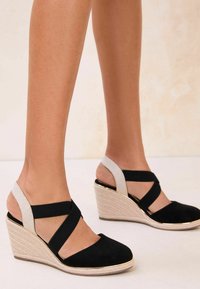 STANDARD WIDE FIT - CLOSED TOE ELASTIC CROSSOVER STRAP - Lodičky na klínu - black