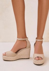 REGULAR FIT - BEIGE PEEP TOE HEELED ESPADRILLE - Sandály na klínu - nude
