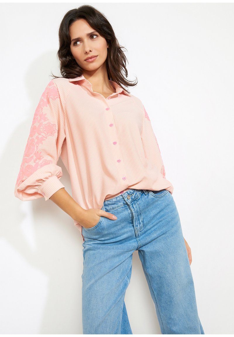 EMBROIDERED OVERSIZED - Košilová halenka - pastel peach