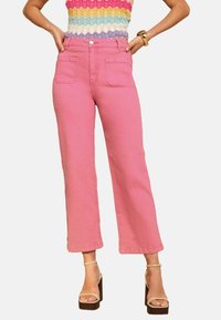 REGULAR FIT - CROP STRAIGHT JEANS . - Džíny Straight Fit - chocolate brown leopard print flocked