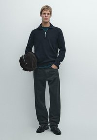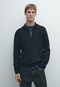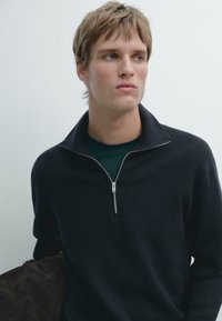 KNIT MOCK NECK ZIP-UP - Svetr - mottled dark blue