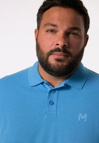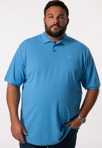 Modrá polo košile vyrobená z hladké tkaniny, s límečkem a třemi knoflíky na přední části. Diskrétní logo na levé části hrudi. Volný střih.