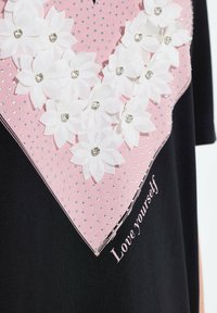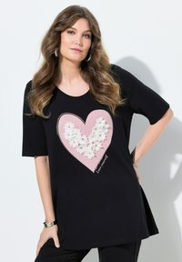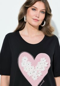A-LINIE HERZ MIT 3D-BLÜTEN UND GLITZER HALBARM - Triko s potiskem - black