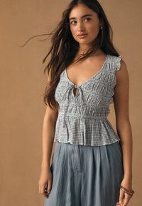REGULAR FIT - SHIRRED TIE FRONT SLEEVELESS - Blůza - blue gingham