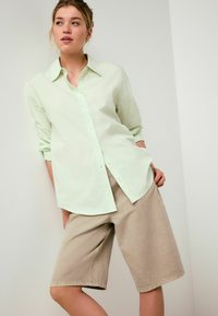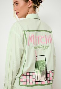 REGULAR FIT - OVERSIZED BOYFRIEND LONG SLEEVE SHIRT . - Košilová halenka - green white stripe matcha graphic