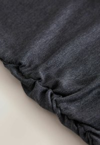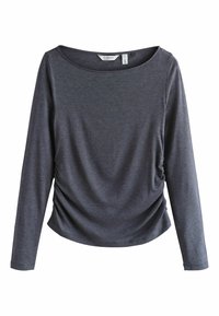 Tmavě šedé tričko s dlouhým rukávem z měkké látky, s širokým výstřihem a na bocích nazbíranými detaily pro volnější střih.