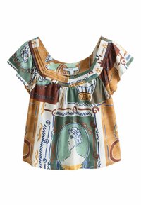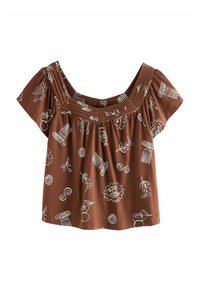 PETITE FIT - SHORT SLEEVED SQUARE NECK TOP . - Triko s potiskem - chocolate brown vase print