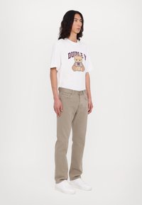 - Osoba předvádějící oblečení je 189 cm vysoká a má na sobě velikost 31x34