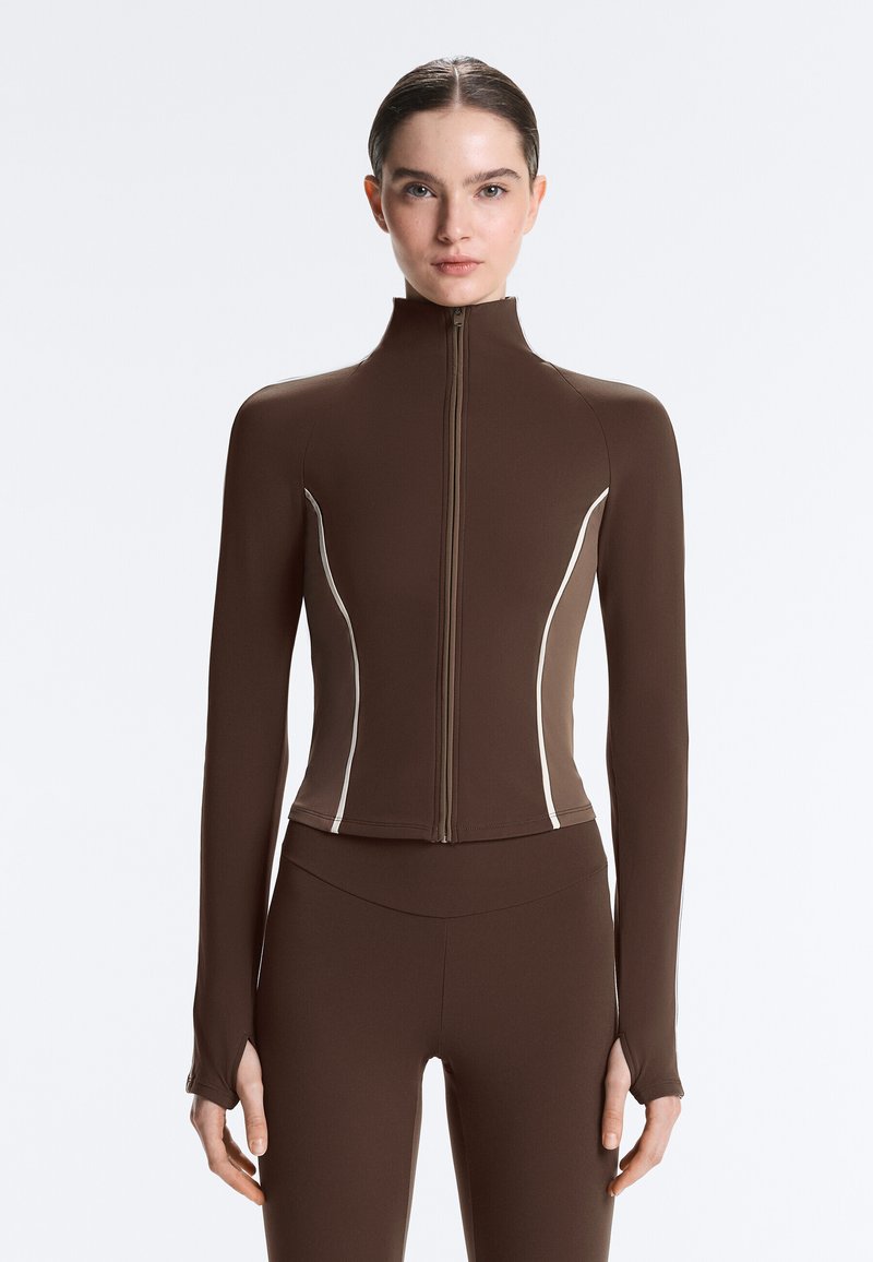 Even&Odd activeESSENTIAL FULL ZIP SPORTS JACKET WITH POCKETS - Sportovní bunda - dark brown