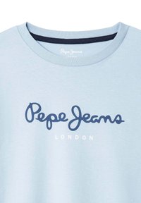 Světle modré tričko s krátkými rukávy z měkké bavlněné tkaniny. Na hrudi má tmavě modré logo "Pepe Jeans London".