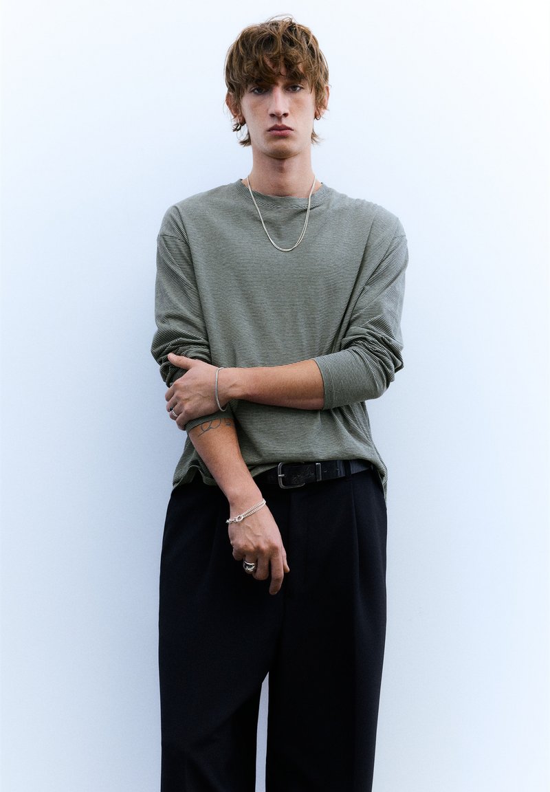 STRIPED - Top s dlouhým rukávem - grey