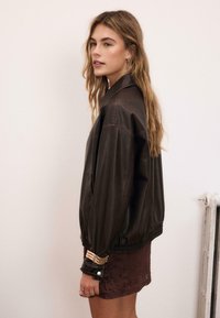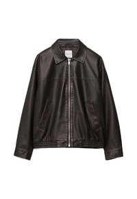 WASHED EFFECT - Bunda z umělé kůže - dark brown
