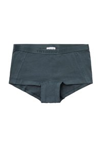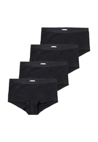 Čtyři páry pánských boxerek v odstínech růžové, černé, bílé a tyrkysové. Vyrobeny z měkké látky s elastickými pasy, na kterých je štítek "SWEDEMOUNT."
