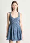 SLIM PINTUCK SLEEVELESS DENIM MINI DRESS - Denimové šaty - denim medium