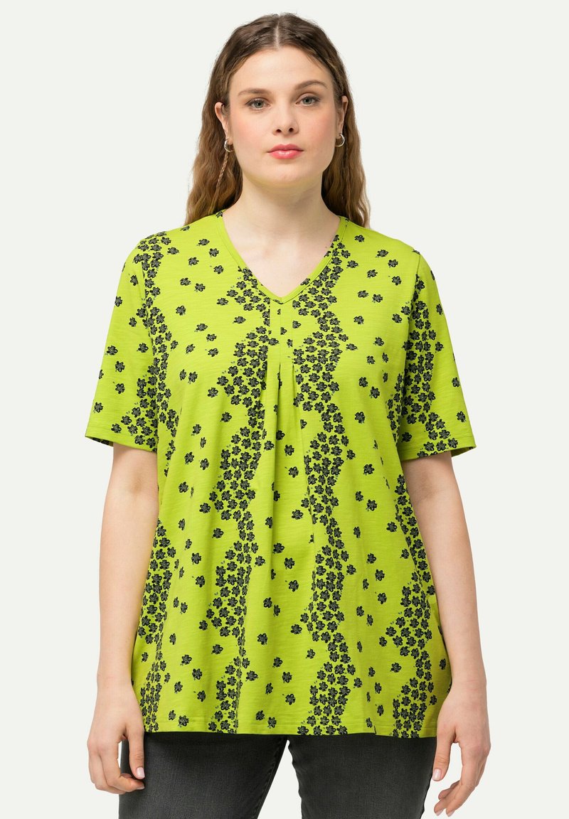 FLORAL SHORT SLEEVE V-NECK TEE - Triko s potiskem - apple green