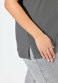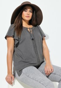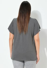 Ulla Popken WING SLEEVE V-NECK TEE - Triko s potiskem - graphite grey