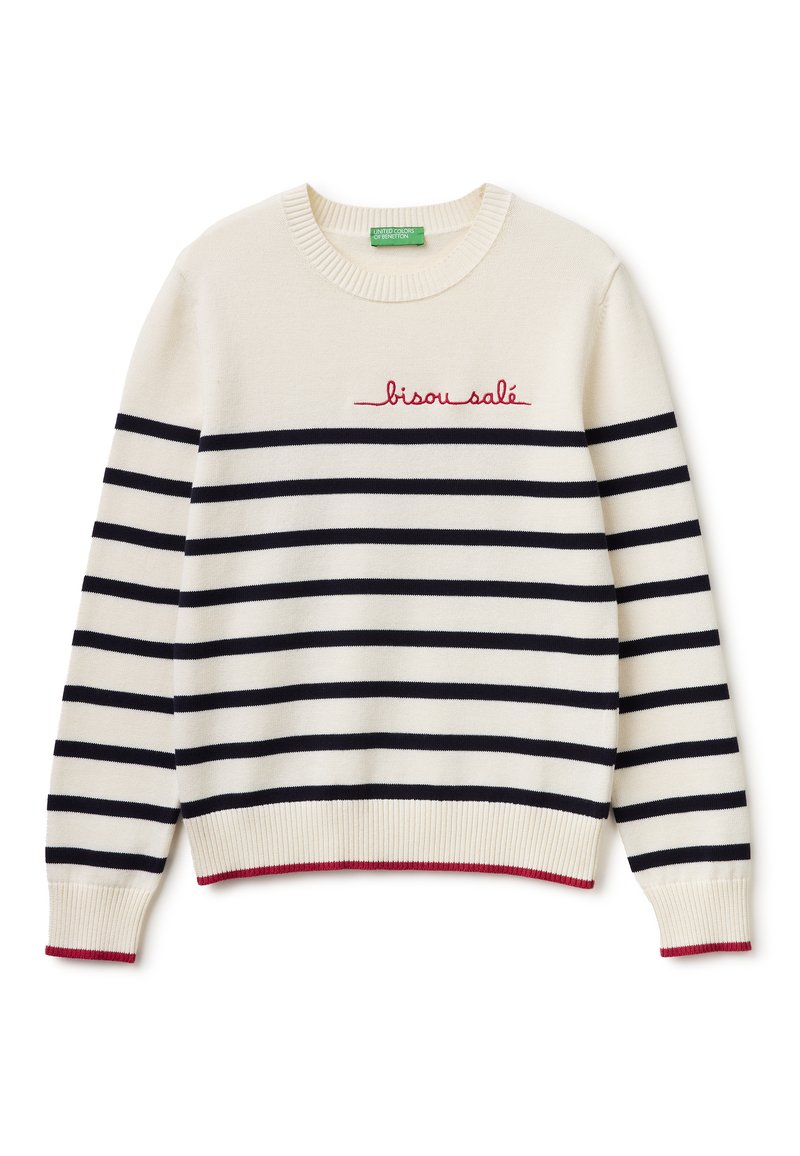 STRIPED SWEATER WITH EMBROIDERED WRITING - Svetr - white