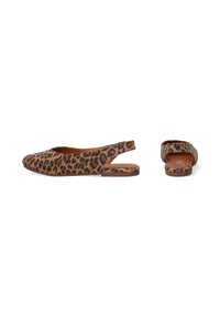 Leopardí potisk na jemném nubuku těchto balerín okamžitě upoutá pozornost, a to zejména díky elegantně odhalené patě, která je předurčuje pro teplé dny. Elastická gumička vzadu zajistí perfektní padnutí a pohodlí při každém kroku, zatímco plochá podrážka a měkká stélka zaručují celodenní komfort. Díky minimalistickému střihu a univerzálnímu provedení se tyto baleríny stanou dokonalým doplňkem k mnoha ženským stylům.